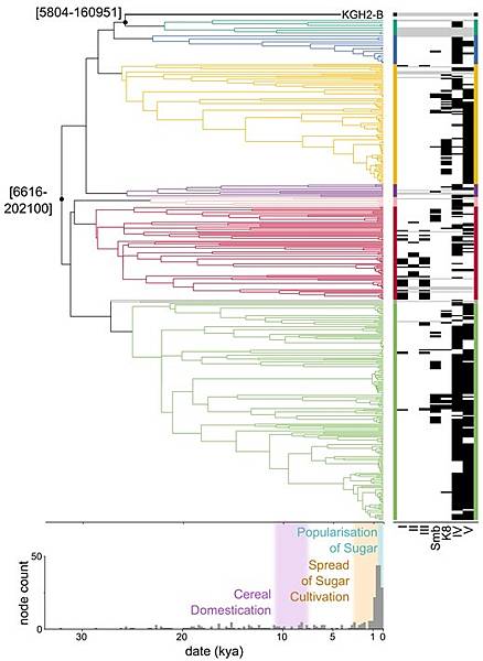 另一款轉糖鏈球菌,這回是第一次獲得古代基因組。論文又搜尋資料庫,再拼湊出幾個殘缺的基因組。