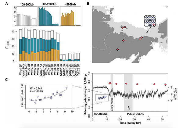 相比之下,海島象的 ROH 是大陸象的 4 倍。值得注意的是,年代比較早的海島象,較長的一段 ROH 較多;比較晚的海島象,雖然 ROH 總長還是不低,很長片段的數目卻明顯減少。