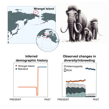 猛獁象曾經是歐亞大陸北方顯眼的大型動物。西伯利亞北部的 Wrangel 這個地方,一萬多年前由於海水上升成為島嶼,島上的猛獁象從此與同類斷絕交流,直到 4000 年前左右滅團。變成孤立小族群,對猛獁象的遺傳基因造成什麼影響?這個 2024 年的論文做惹一系列有趣的分析。