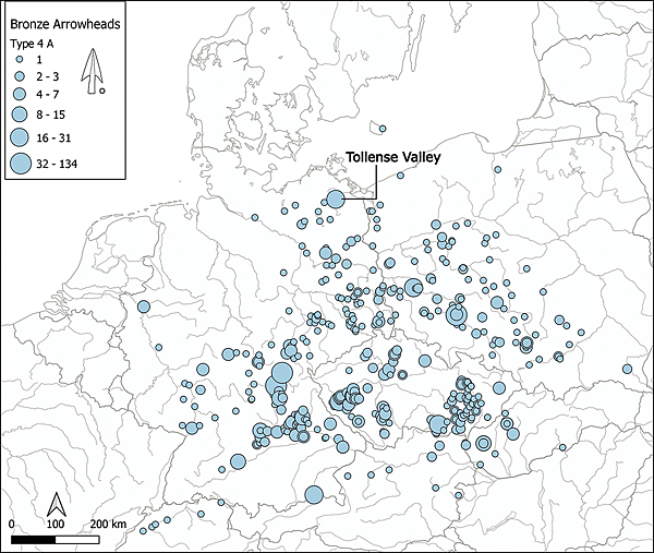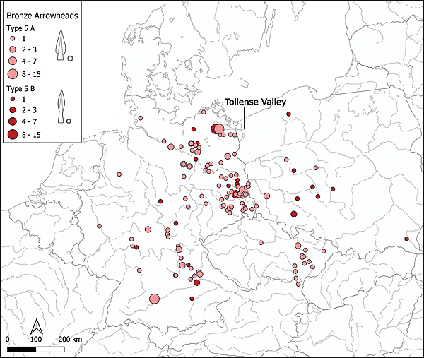 德國東北部的圖蘭森河在青銅時代 3200 多年前發生一場大戰,目前已經有一系列研究問世。這個 2024 年的論文關注「箭頭」,從型態判斷,留在戰場的一部分箭頭,類似當時更南方流行的款式,或許也是參戰者的來歷。