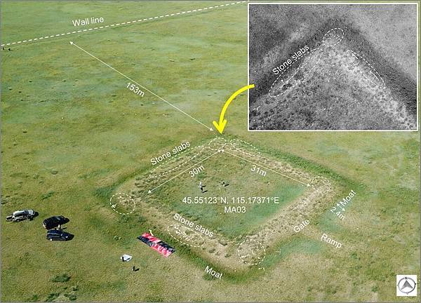 主要關注目標,位於蒙古國的蘇赫巴托省(Sukhbaatar),一處石造建築遺址「MA03」。這兒很靠近現今蒙古、中國的國境,目前長城能看出一系列 34 個據點,MA03 是西側數來的第 3 號。